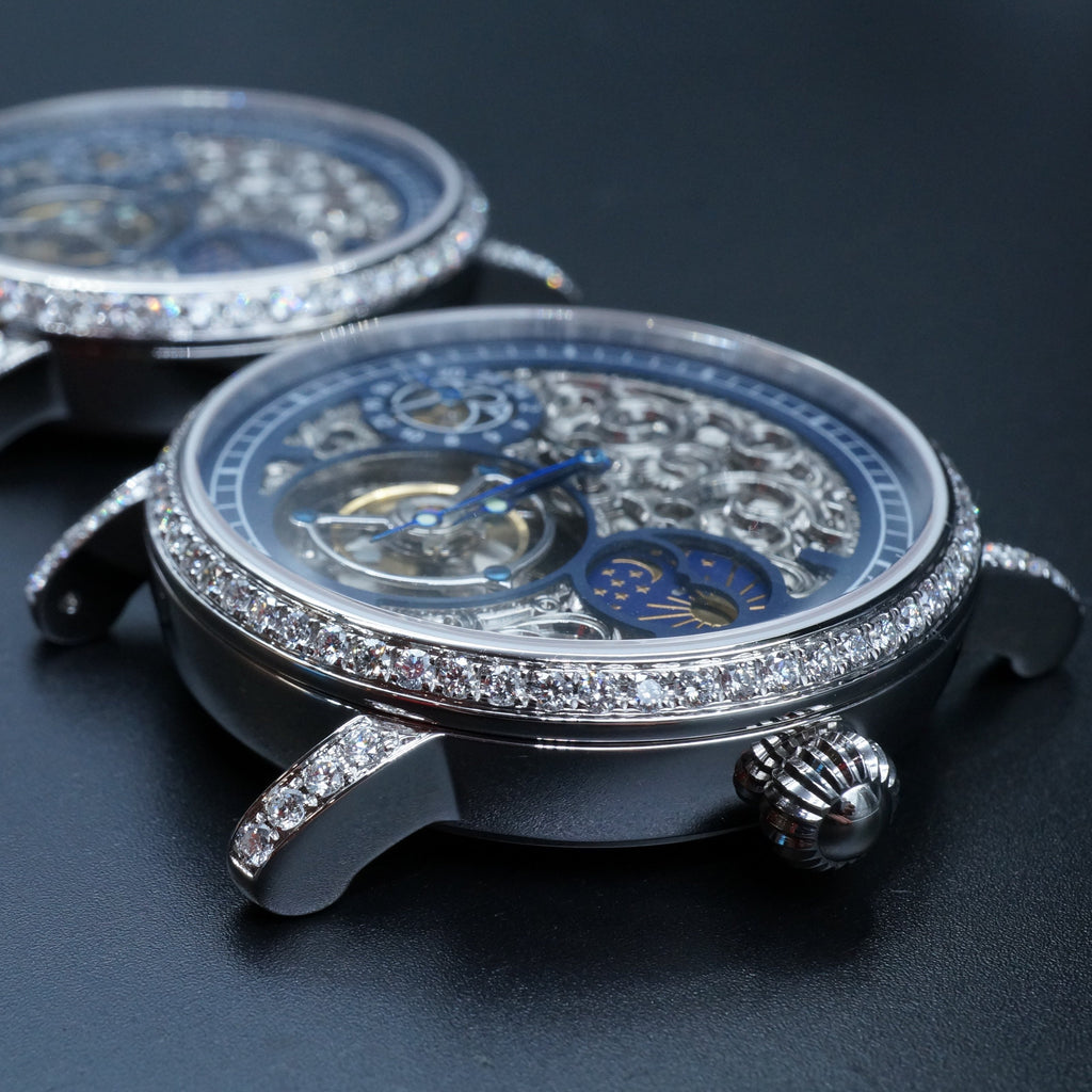 The ERA Prometheus - Titan Edition is a special limited-edition version with a PLATINUM case that features over 2.3 carats and over 78 diamonds that have been fused with the bezel and stretched around all surrounding metallic surfaces.